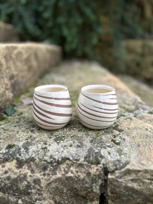 Tiger stripe whiskey tumblers (dark clay) (set of 2)